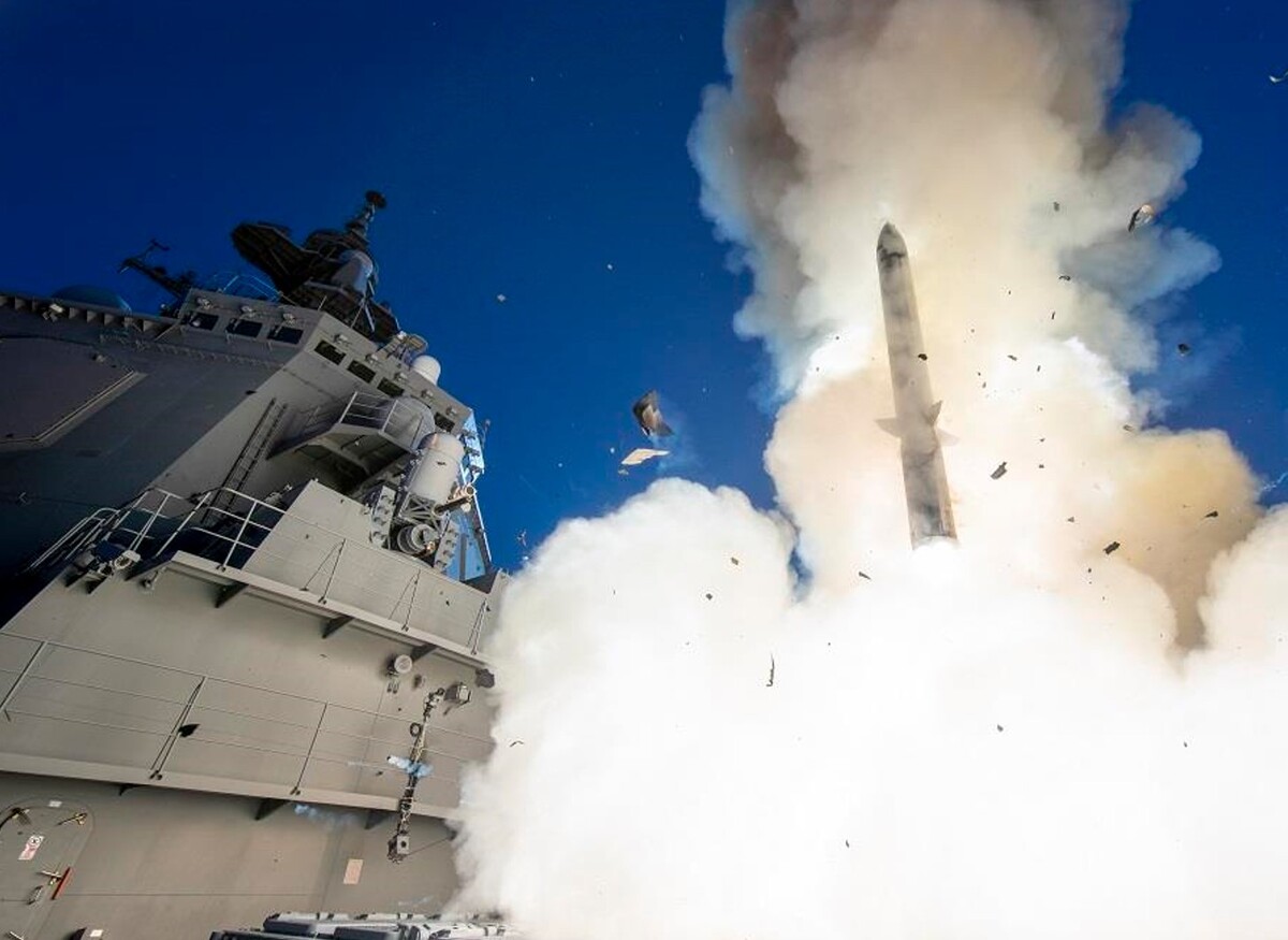 일본이 미국과 공동개발한 SM-3 탄도미사일 요격용 함대공미사일이 발사되고 있다.